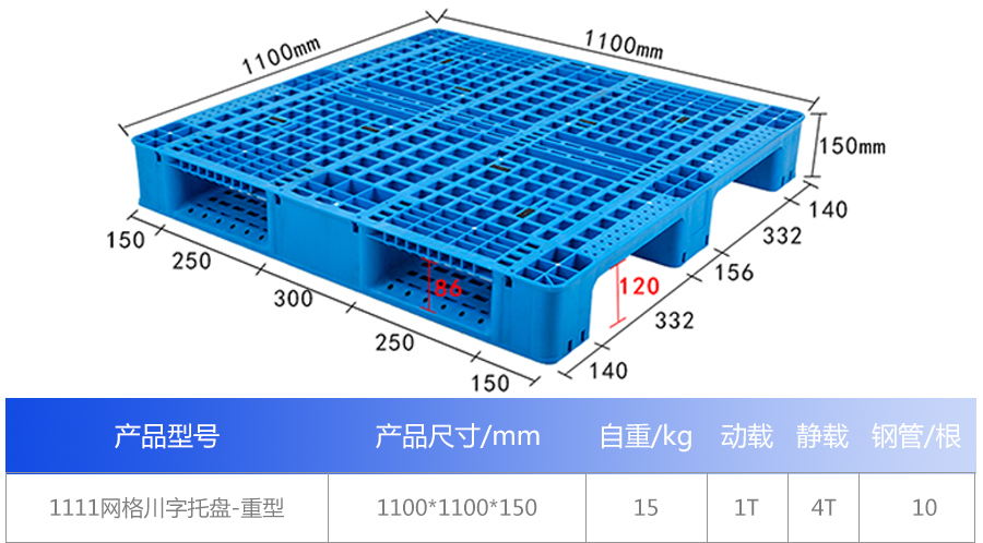 1111網(wǎng)格川字塑料托盤棧板(重型)
