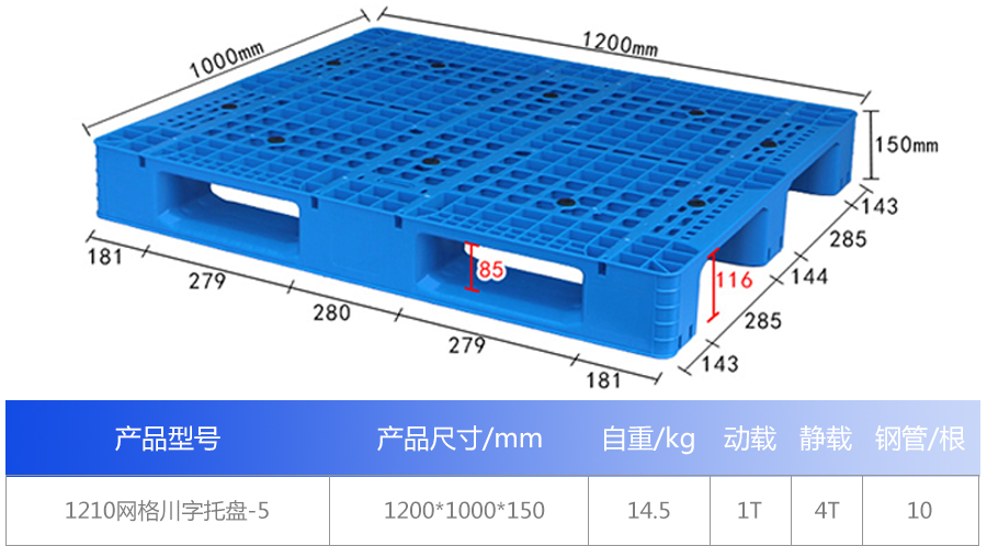 產(chǎn)品名稱:1210-5網(wǎng)格川字塑料托盤