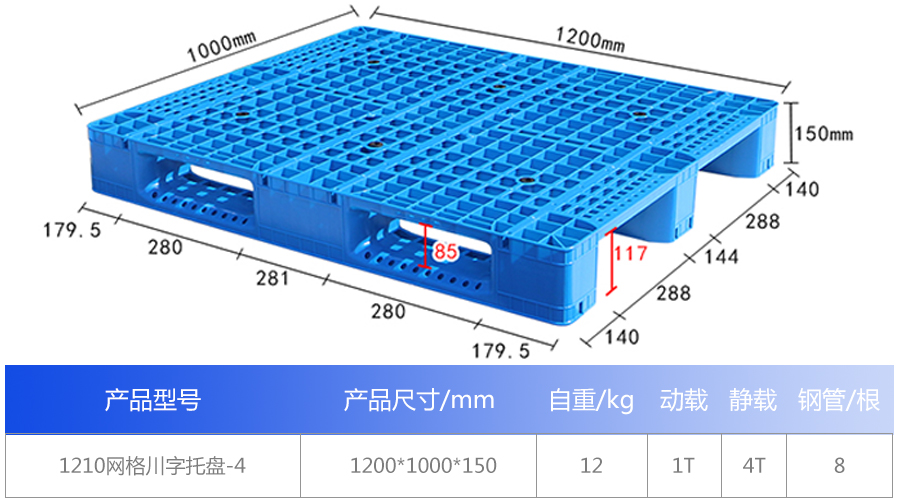產(chǎn)品名稱(chēng):1210-4網(wǎng)格川字塑料托盤(pán)